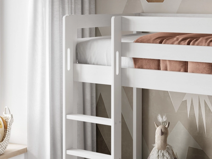 This spacious continental-size bunk bed is built with sustainable living in mind. The solid pine provides a strong frame that will last for years, and the sleek modern design will look great in any bedroom. The Nora bunk has plenty of headroom, so you can easily sit with your child before bed.