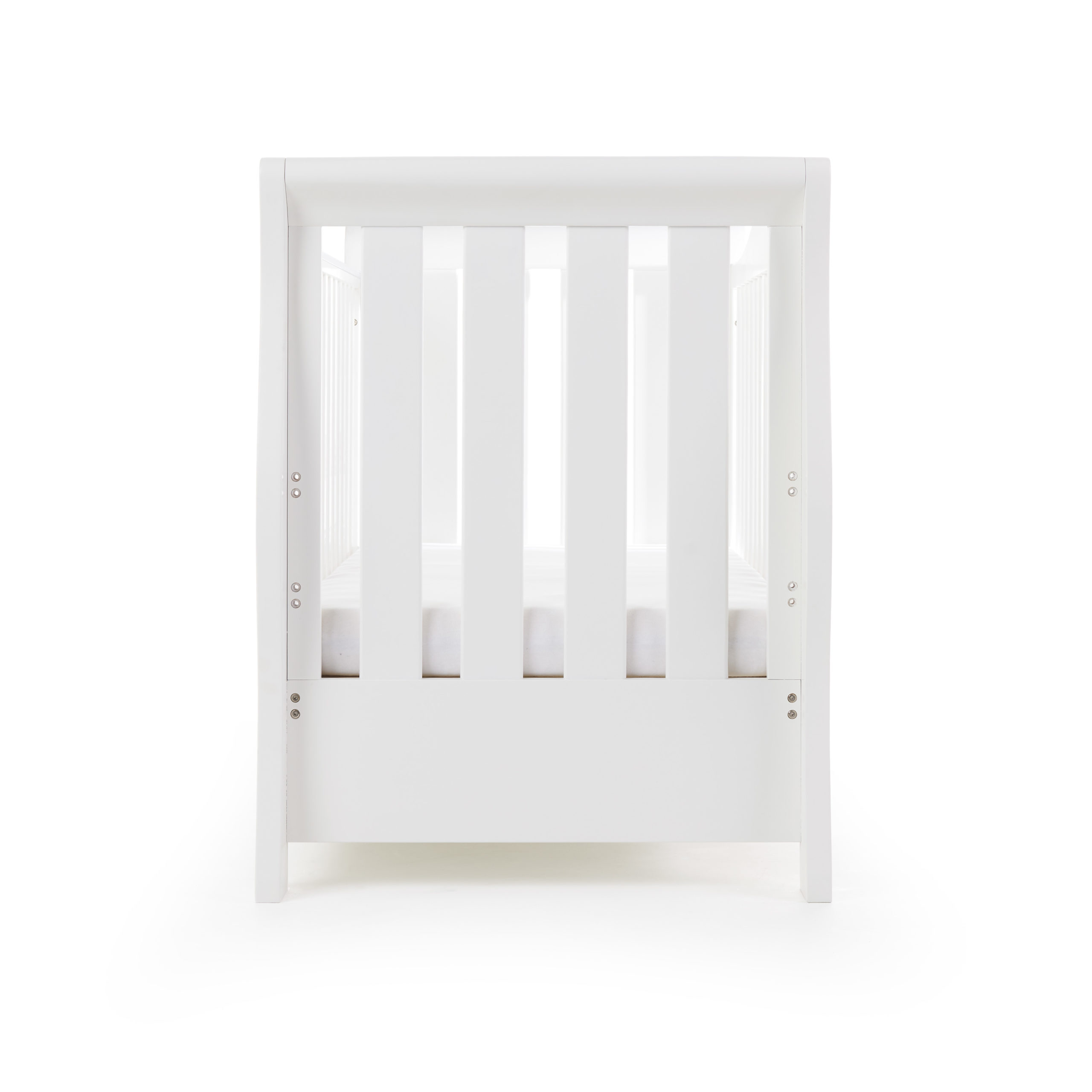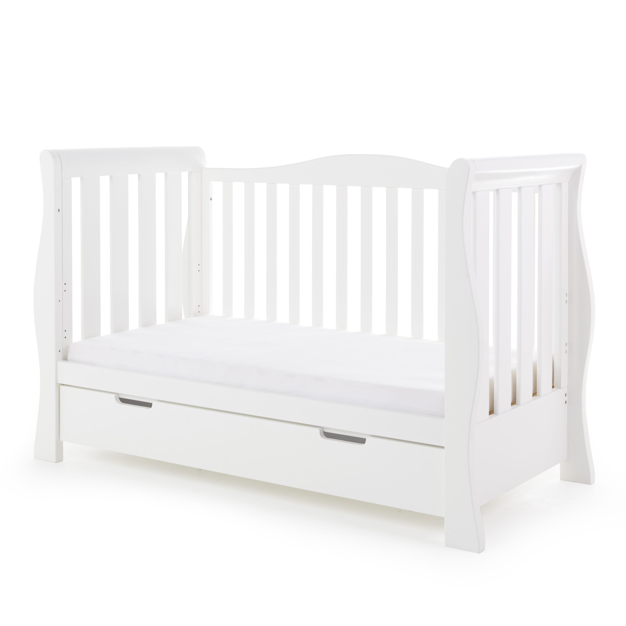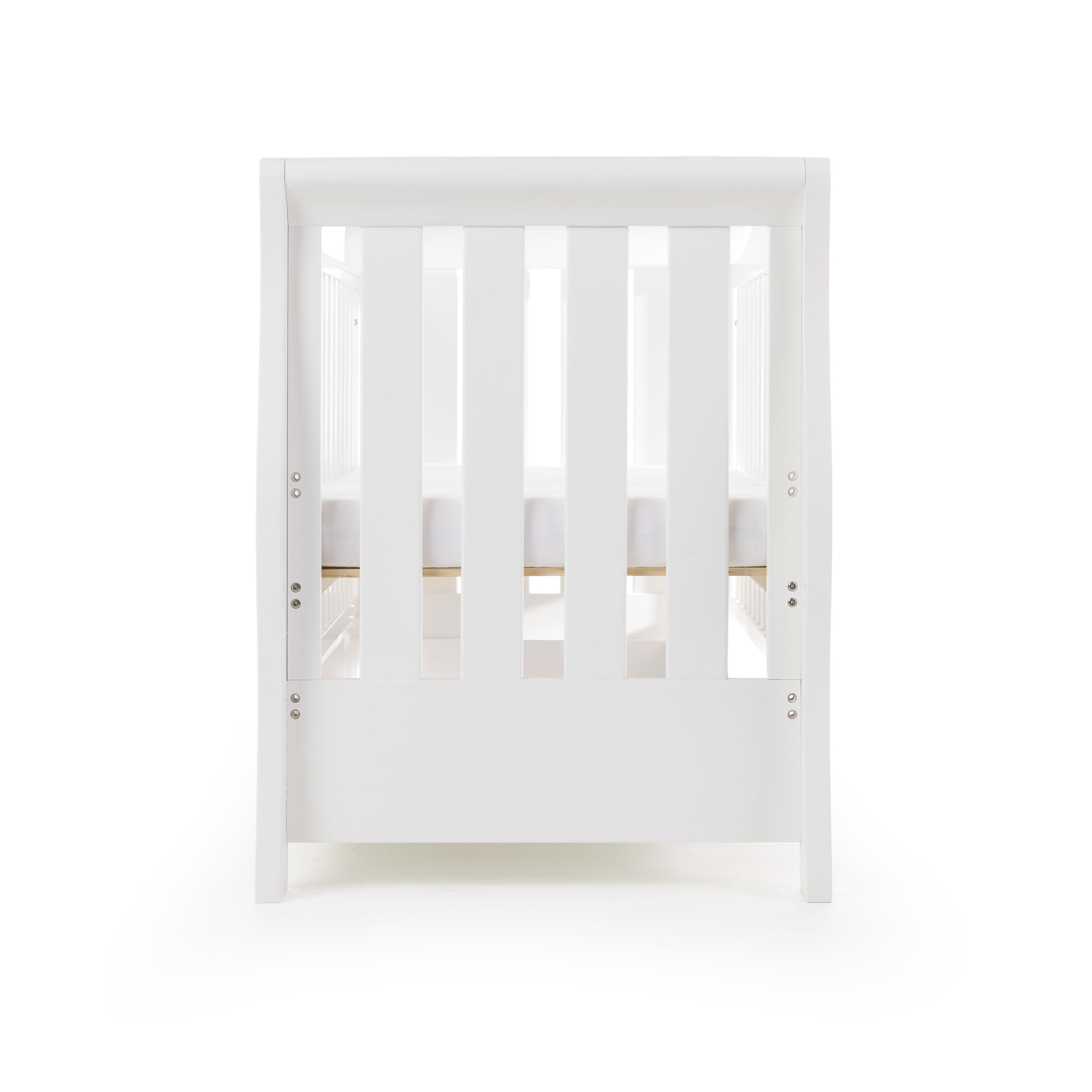 Obaby’s Stamford furniture range offers families the perfect combination of style, quality and practicality. Standing proud at the top of the range is the beautiful Stamford Luxe sleigh cot bed, crafted from thick, solid pine and featuring deluxe hand carved ends that flow perfectly into the curved rear side rail creating a unique look which truly sets the Luxe apart from other sleigh cot beds.