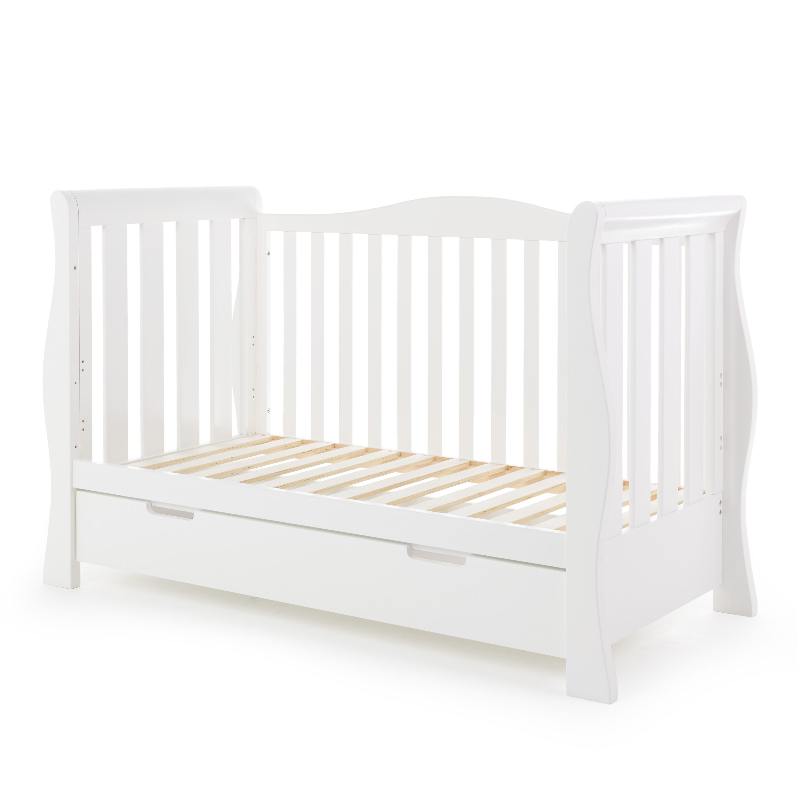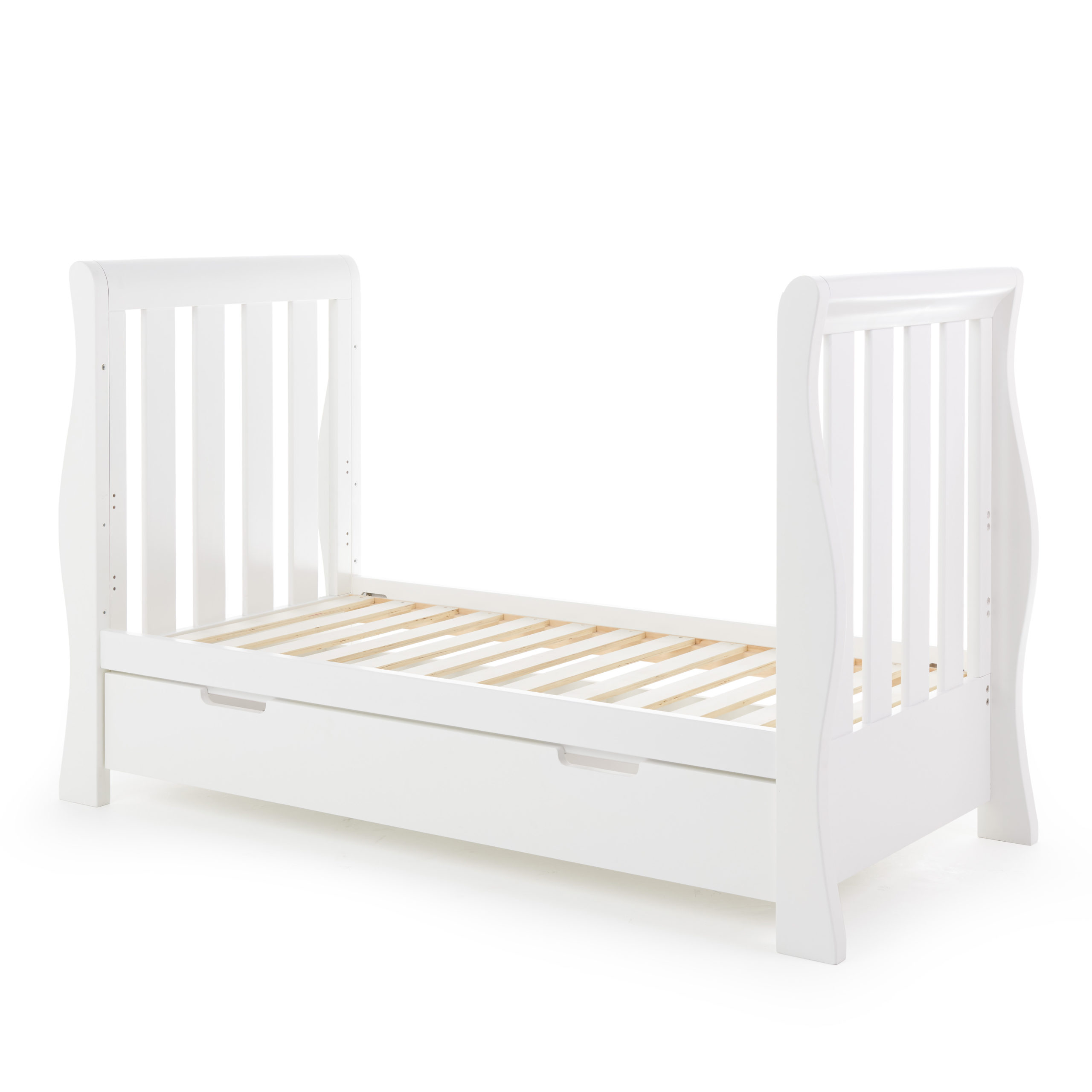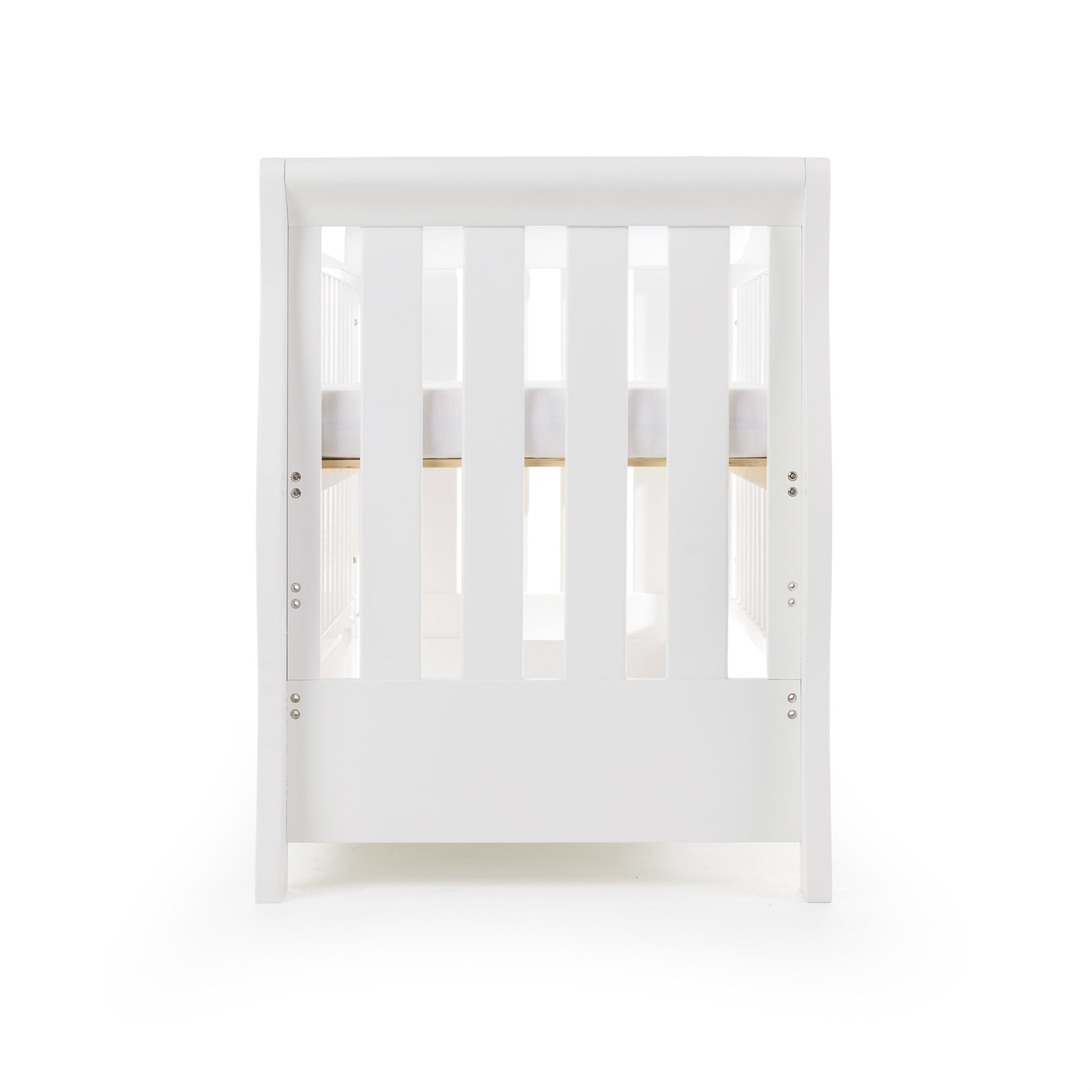 Obaby’s Stamford furniture range offers families the perfect combination of style, quality and practicality. Standing proud at the top of the range is the beautiful Stamford Luxe sleigh cot bed, crafted from thick, solid pine and featuring deluxe hand carved ends that flow perfectly into the curved rear side rail creating a unique look which truly sets the Luxe apart from other sleigh cot beds.