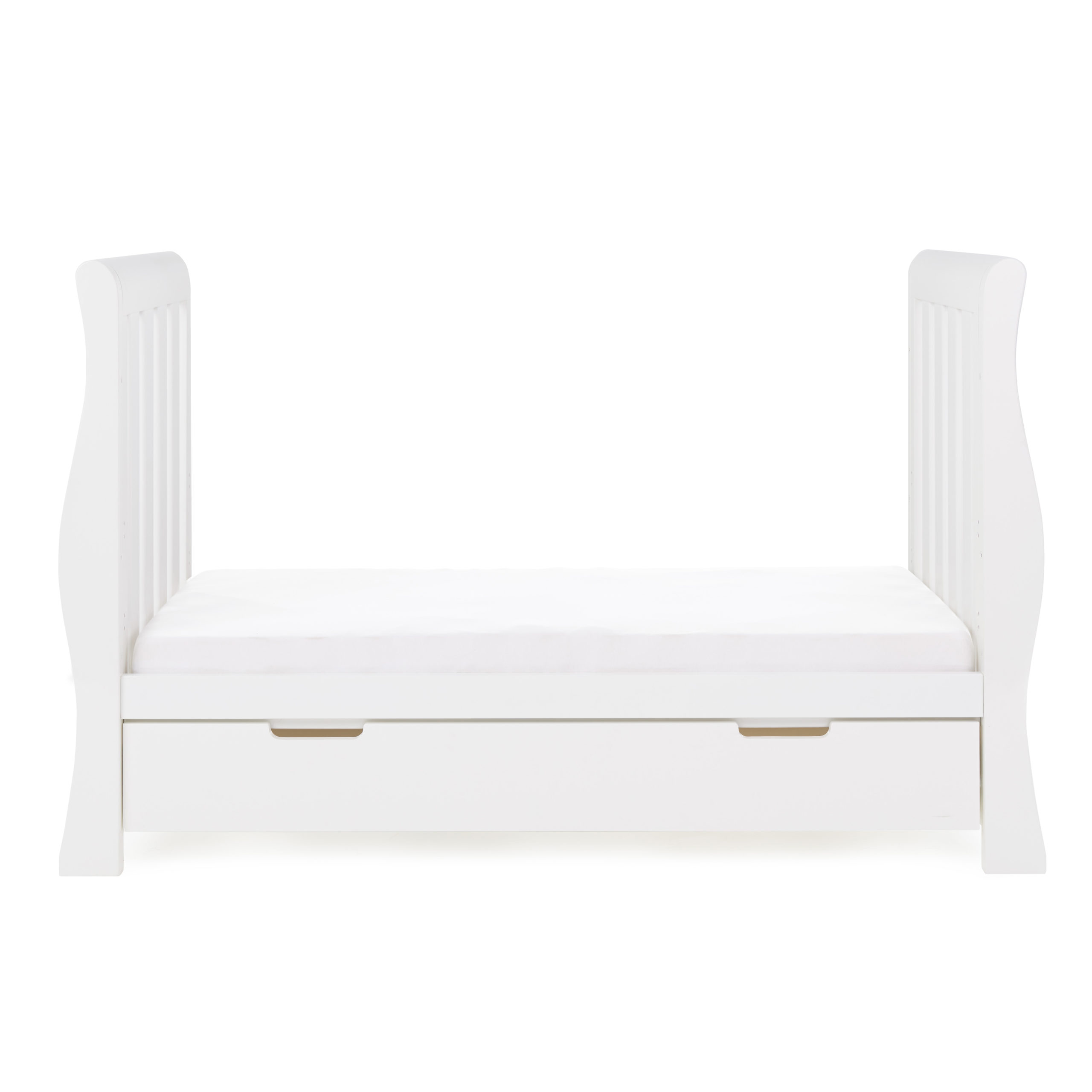 The integrated under drawer smoothly glides on runners, fitting neatly under the cot bed. With a huge 77L capacity there is plenty of storage for your child’s precious belongings and clothes. Recessed handles create a stylish and uncluttered look, whilst ensuring it remains snag free and simple to use.