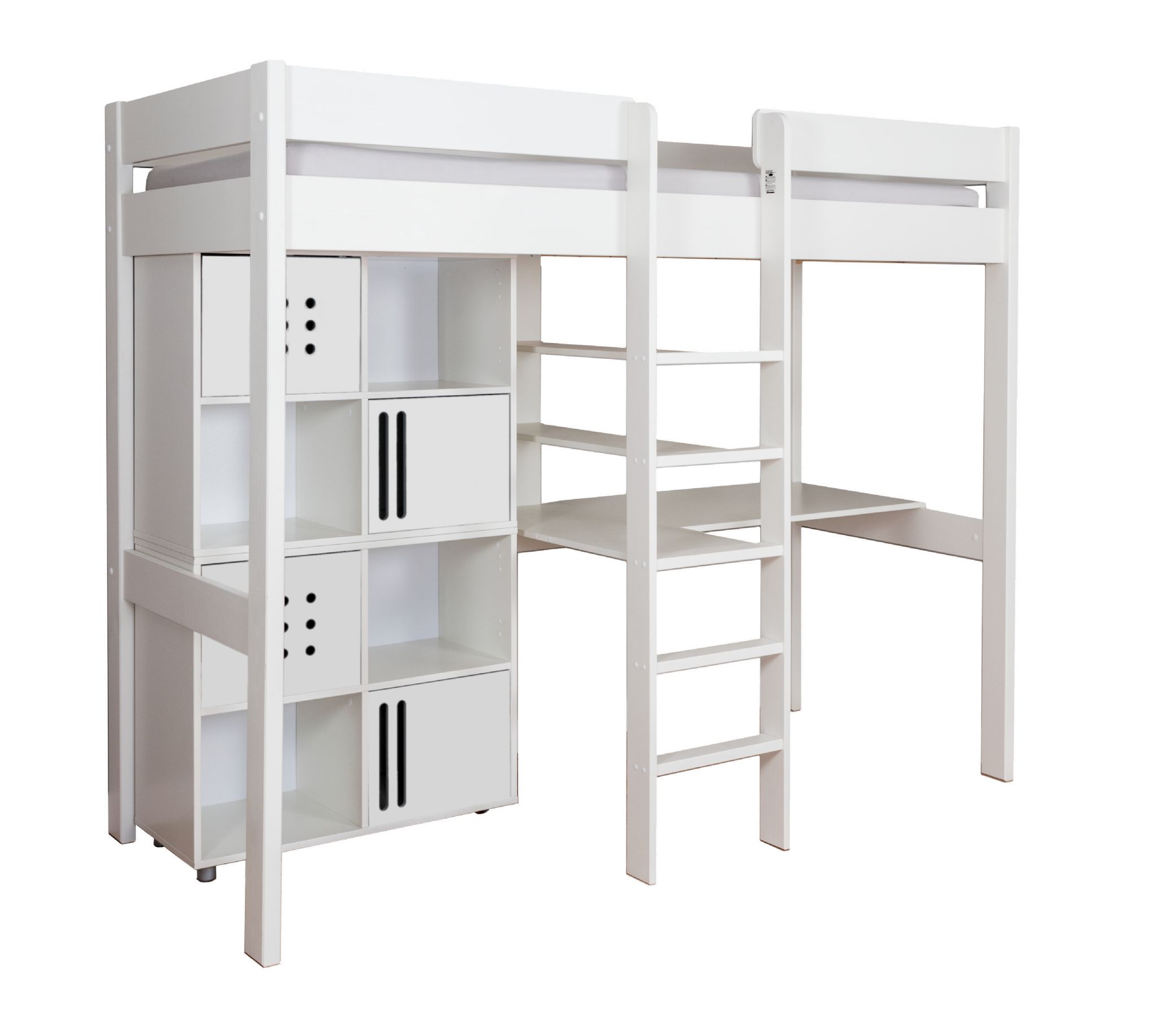 The L-shape desk provides ample surface area for study or play and the central shelves that run behind the ladder allow for a great display area.