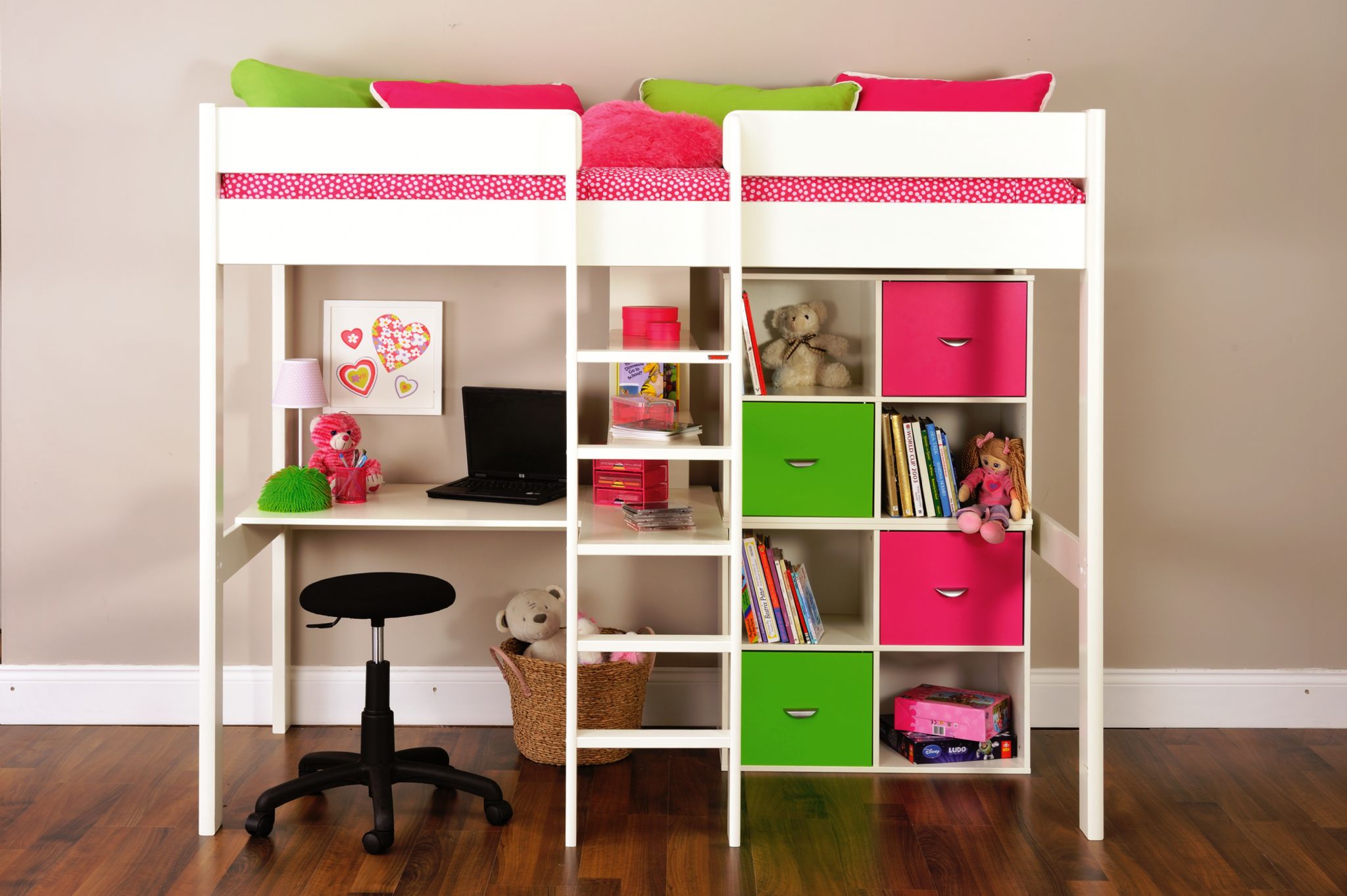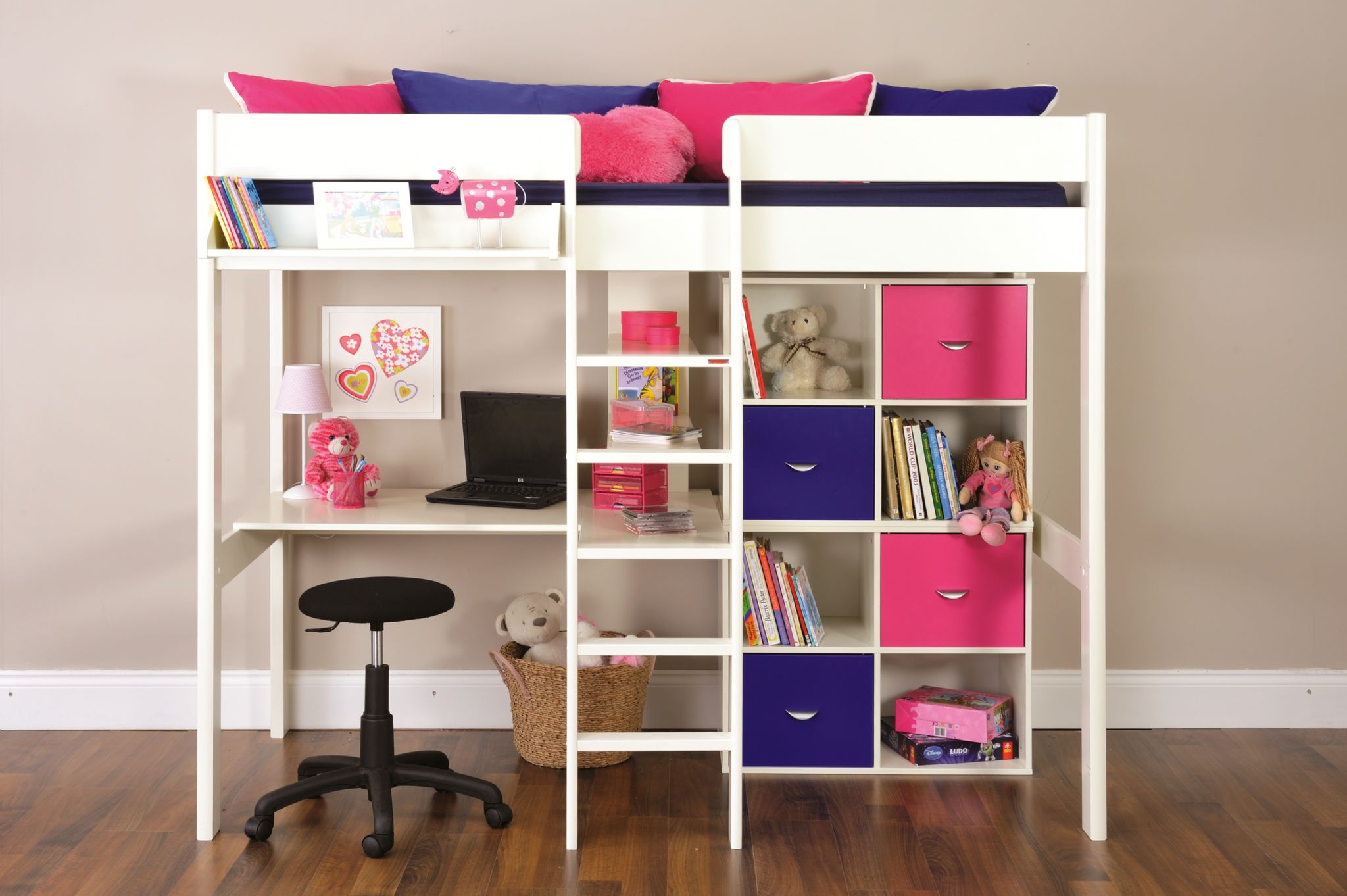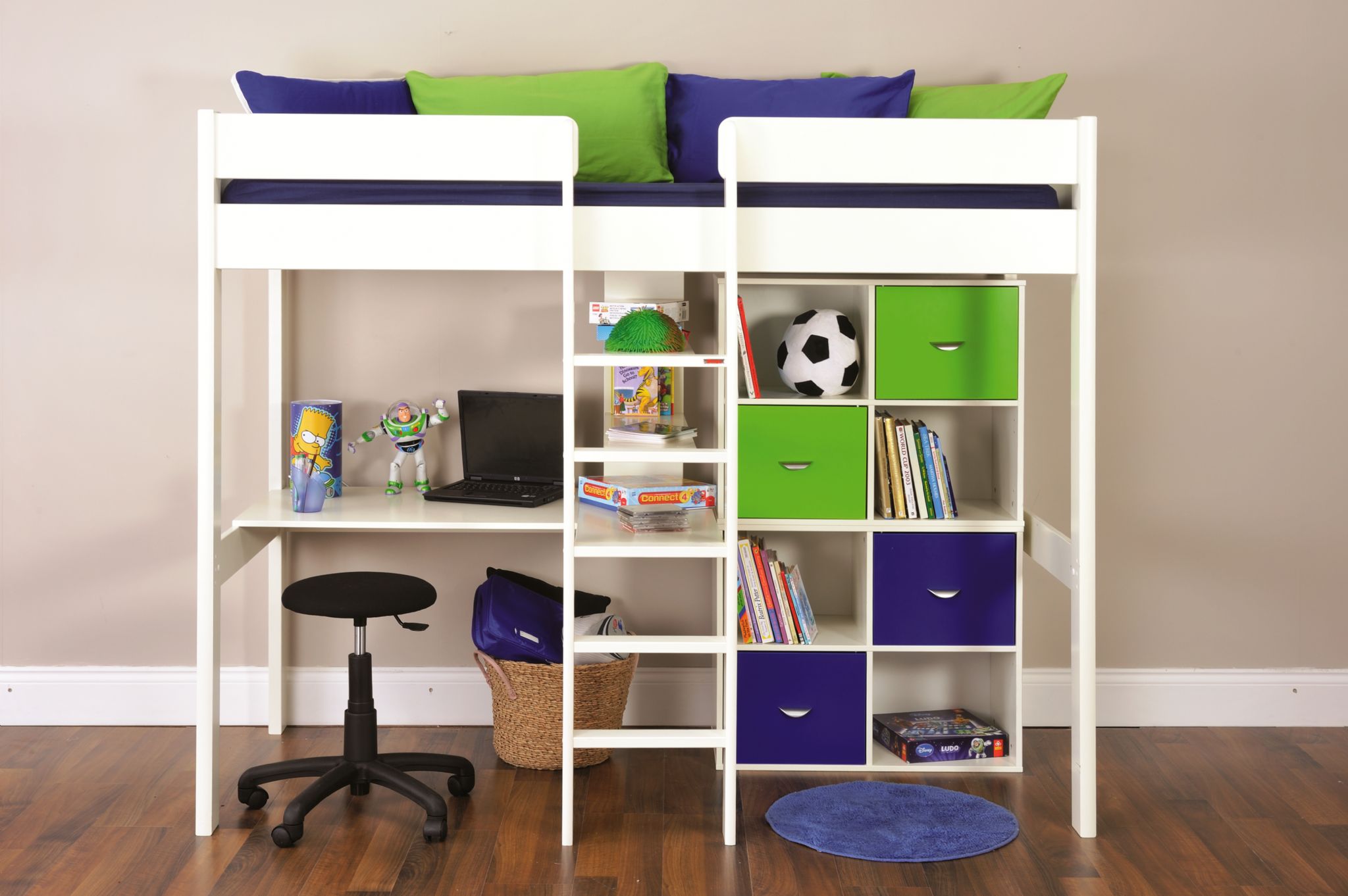 The Stompa Uno 6 is a childrens highsleeper package that is made from good quality pinewood and then lacquered in white to produce a robust and wipeable surface.