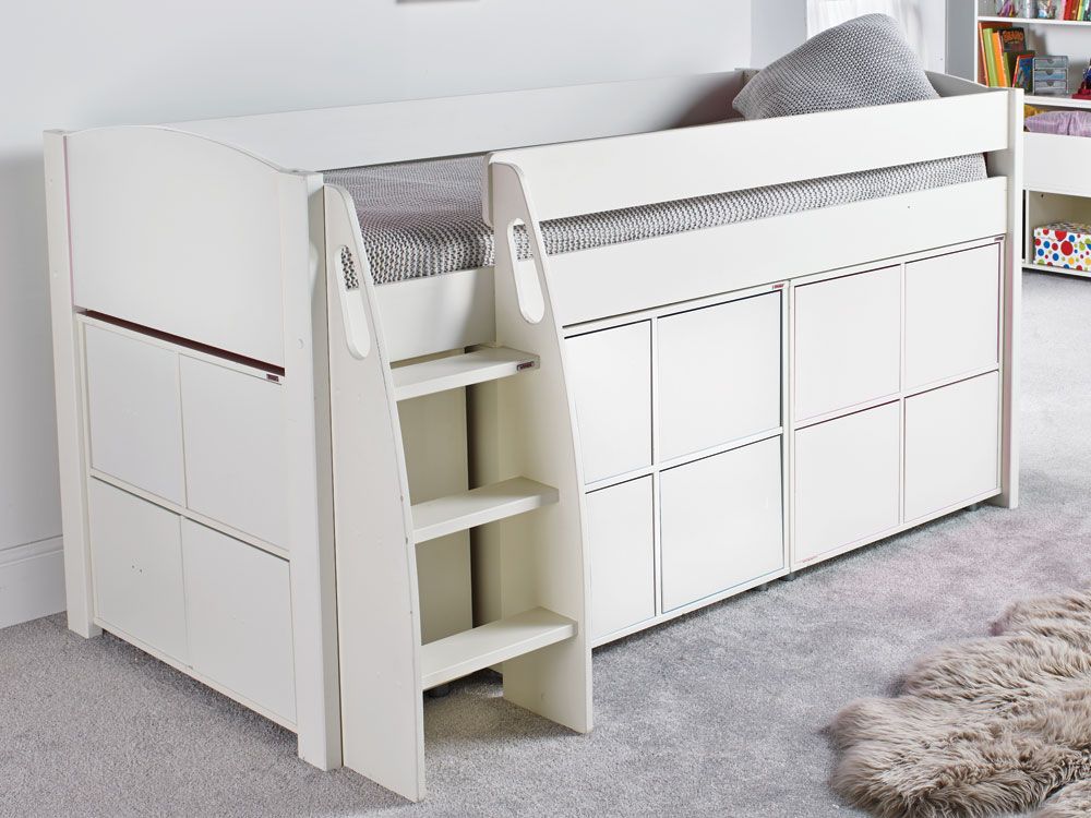 The mid sleeper ladder is curved in design to allow for a deeper foot tread for small feet and it can be positioned to either end of the bedframe on home self-assembly.