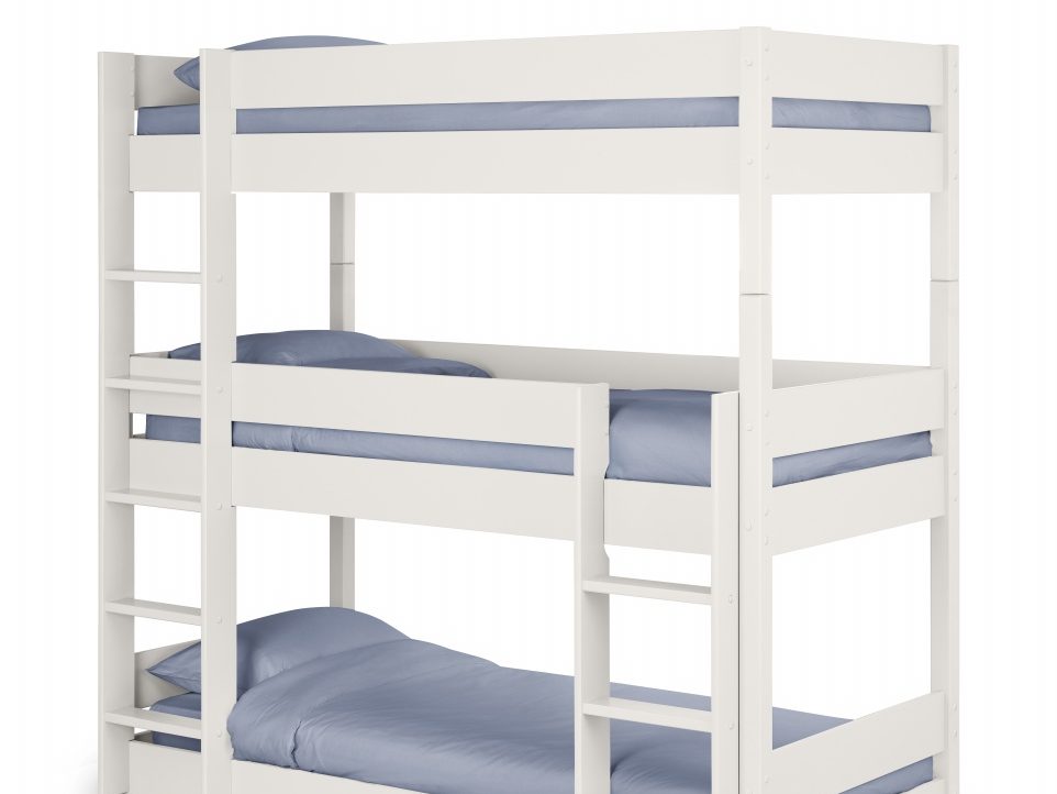 Accommodating 3 children whilst only using the space of one single bed, the Trio bunk bed is the perfect solution for those short on space in smaller bedrooms. Ideal for sleeping siblings, or regular sleepovers the durable Trio Bunk is finished in a stylish grey, matching any bedroom decor. Crafted from solid pine and MDF, this safe and sturdy design is essential for maximising space.